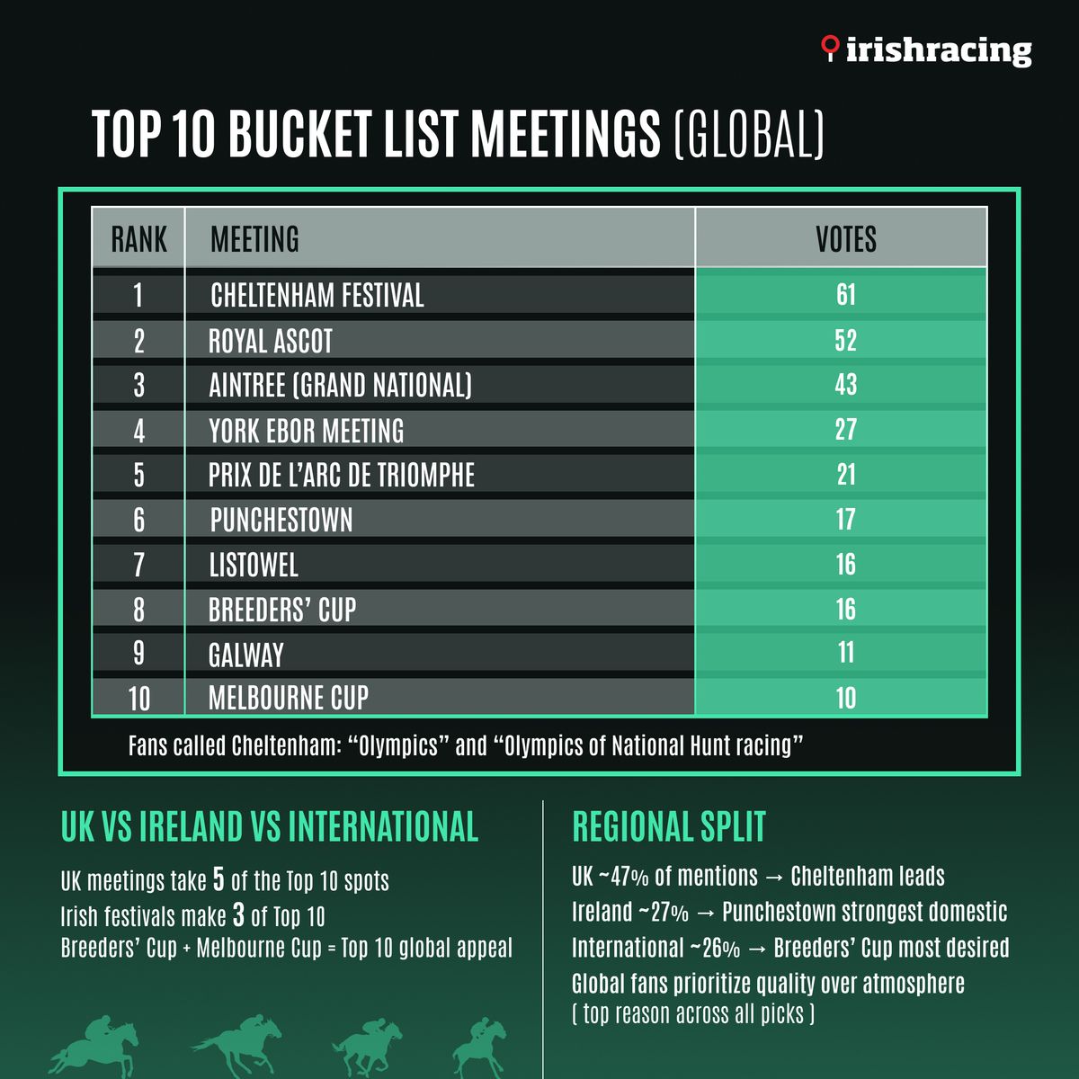 “The Cheltenham Festival was always going to be the No.1 bucket list trip for Irishracing.com fans, but it is something of a surprise to see Royal Ascot coming in a close second.