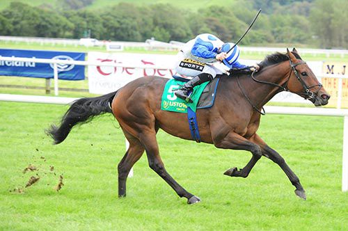 We've always thought an awful lot of him, since he was two, and he's a great work horse at home,. He was unlucky in the big race at Galway (fourth in Topaz Mile) when he got stopped by one of ours coming up the hill. After the two mils of rain that fell the ground is heavy but loose and we half fancied him. He's a gorgeous looking horse and we'd have been disappointed if he didn't do what he did today. He's probably one for the horses-in-training sale at Newmarket and he could be a nice dual purpose horse.