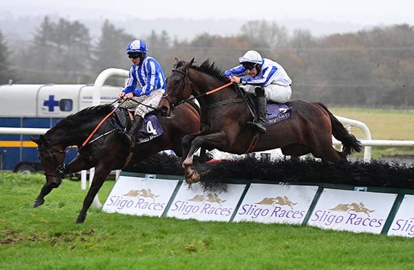It wasn't ideal running her back just eight days after Thurles but these four-year-old fillies maidens are very scarce, so we said we'd have a go. We'd have been more confident if the rain didn't come but Cian was actually surprised how well she handled the ground because she's a very small, light filly. . She jumped very quick and the step up in trip seemed to suit her. She'll definitely have another run on this type of ground, and when it gets too soft we'll pull the plug on jumping until the spring. She had a very unlucky summer, with draws and getting boxed in, and I kept telling the lads to be patient, that she's a good filly. . I'd hope that we can improve her on the Flat as well and she might have a night in Dundalk.