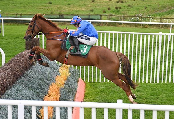 Keith was disappointed with his jumping, he said his heart was in his mouth the whole way. He said he wasn't happy with his jumping and that has been his achilles heel. That is why he is rated a wee bit lower than over hurdles. I dont know why, he jumps well at home but when he goes to the track the jockeys never seem just as happy as they should be. He wouldn't have blew you away maybe over the last two - Keith said they were his best jumps. You say that (on a fair mark), it looks a fair mark because of his hurdle rating but he has only won beating a fairly exposed horse. I don't think the handicapper can be too hard on him and maybe give him another chance. Possibly step him up in trip and give him a wee bit more time with his jumping. He's still big and raw, he's a big baby. He still needs a bit more time, he's still a bit weak and you can see there is a long space between his runs to try and let him strengthen. Keith is a horseman, he hunts them around. He's very, very good.