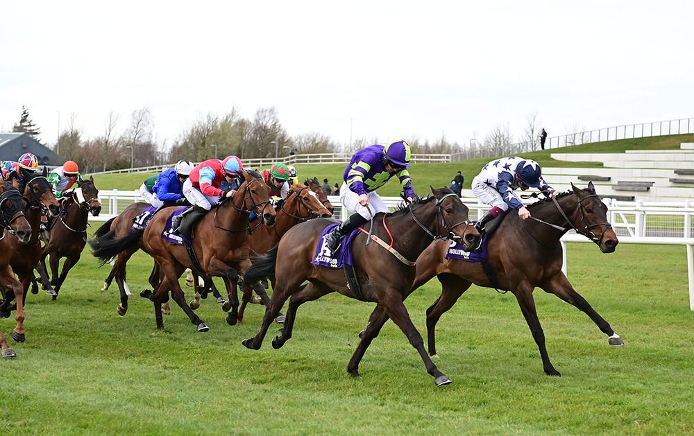 The two of them did a little piece of work the other morning, Colin (Keane) rode the other fella and Oisin rode this fella. He worked so well I said I couldn't not run him,. I didn't ever want to run one against the other but I knew the other fella was going to need it and I was always afraid that the ground was going to be too quick for him and that I might have to take him out. This fella goes on any ground, maybe not heavy but he goes on most ground. He's just getting better and Oisin thinks he'll be better over a bit further. He thinks a mile-and-a-half will suit him better because he says he actually struggles early, maybe he's lazy though. Maybe a fast run mile-and-a-quarter suits him best. He's been in fantastic form all spring. In his work the other morning he went six furlongs and he couldn't get a hold of him at all. To have the two of them heading the same direction you don't like to be bumping heads. Chris (Hayes on Helvic Dream) said the ground was as quick as the other fella wanted it. He wants soft ground and he'll come back here for the Mooresbridge Stakes. The winner is in it as well and you'd have to think about that race for him as well. If he keeps climbing the way he's climbing you wouldn't know where he would end up. That was impressive.