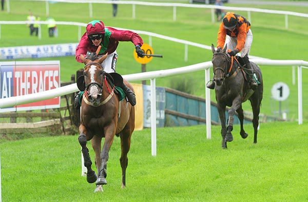 She keeps winning. On her run in Galway she was entitled to win this. I'd say we'll probably be going jumping fences sooner rather than later off her mark - she is only 105 over fences. I'd say we will have to go jumping fences, she has the size for it. She is probably going to get another 7lb there so we will have to go jumping fences.