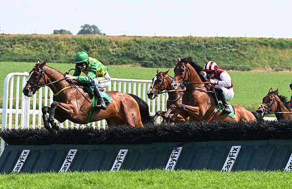 He was good, I was just afraid of the hill here - he travels real well and sometimes just doesn't see it out. Dan was good and positive on him. It is nice to get another one over hurdles with him. He got a fair penalty for being third in a good Grade B at Kilarney and it kind of knocked the stuffing out of us last year with him. He has dropped a couple of pound and that helped him there today. We knew that (there would be plenty of pace) and we thought that we would have something to track the whole way. As Dan said, he would have loved to have had something for a bit longer. He got caught here I think two years ago up the hill, so I just closed my eyes!. It kind of just didn't work out for him (the last day in Punchestown), he missed a hurdle or two and he was unlucky four from home when a horse in front of him missed it and shuffled him all the way back. He had to make a lot of ground from there. The last furlong he just kind of got caught for stamina then. I think he'd get it (extended 2m3f/2m4f) if things panned out properly for him, I think he is versatile enough.