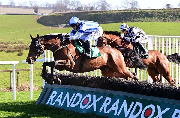 The leader ran the other day against a horse of ours in Down Royal so we felt we would sit in behind him and see how we go. It was a king of a raggedy start I thought and anyway it worked out for us in the end. I suppose the other horse tired. He did (relish the better ground) and Barry gave him a very timed ride. He looked to have a lot to do but I thought the leader was going very quick after running during the week. He felt he would reel him in but you have to go and do it. He will probably head to Punchestown (for the final). I think he is improving a bit and the ground helped him. He has a real good page this lad. He was a little bit hard to handle early on and if you saw him three months ago, you'd say there was no handling him. He's come a long way
