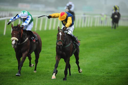 We're delighted to get that out of the way. She came here a little bit under-cooked and she should improve an awful lot from it. The Morgiana (Hurdle at Punchestown) is the obvious place to go now but we won't be getting too carried away yet. We won't go travelling with her until after Christmas. She settled like a lamb and the ear-plugs (1st time wearing them) worked wonders. She went around the parade-ring here last year like a scalded cat and had her race run then. She was a filly last year but she is a mare this year . there is no comparison.
