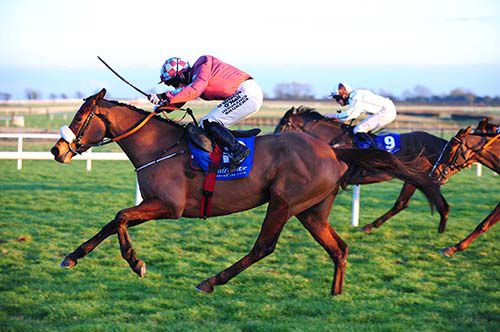 That's good, he deserves that. He had some very good runs without winning, and is an out-and-out stayer. He has the option of the four-miler at Cheltenham but we may train him for the Irish National. He's probably an Irish National horse and I think Gigginstown have another one for the four-miler. He may run in something in between. He jumped well today and is much better over fences than he was over hurdles. He doesn't mind heavy ground.